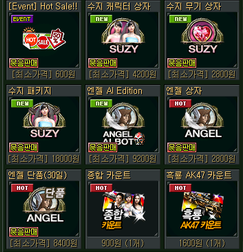 대표적인 과금 상품으로는 게임 론칭 후 빠르게 치고 나갈 수 있게 도와주는 초심자 패키지, 한정 패키지가 있고 30일~영구 적으로 제공해주는 VIP 상품과 월정액 상품이 있습니다.