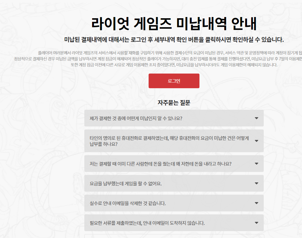 로그인을 해서 대리결제로 인해 미납인 내역이 있다면 납부를 하셔셔 계정을 풀 수 있는 방법이 있습니다.