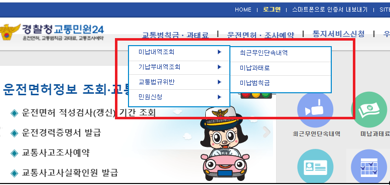 교통범칙금과 과태료에는 '미납내역조회, 기납부 내역 조회, 교통법규위반' 사항 등에 대해서 정보를 얻을 수 있습니다.