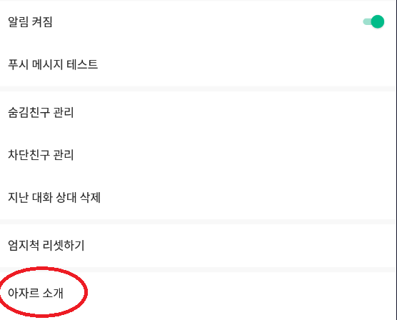 2. 스크롤을 아래로 내려 아자르소개를 누른다.