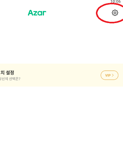 1. 아자르 메인에서 1시 방향에 톱니바퀴를 누른다.